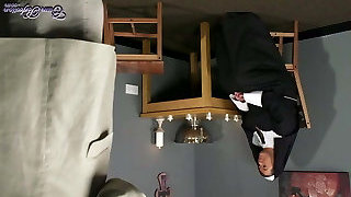 Trussed up in a storage room and fucked by 3 women