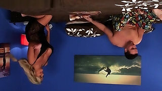 Tanned MILF Maddison Lee is watching an old boy in VR jerking off in CFNM