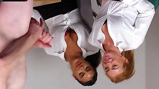 CFNM busty British nurses in lingerie suck rod in 3some