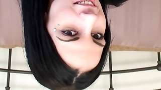 Sexy goth stepsister is toying with her pussy so gullet watering that her brutha can't resist and cums on her face