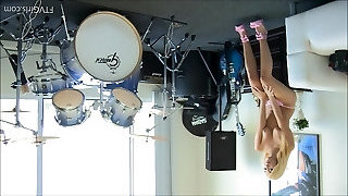Sporty blonde babe Kenzi stuffs her labia with a banana after exercise