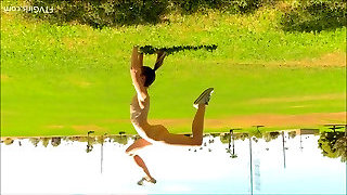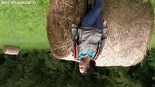 Nicole Love in jeans draining passionately outdoor