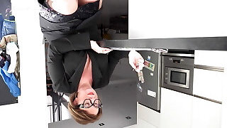 BBW assistant got bored at work and decided to have joy with her muff while the boss is busy
