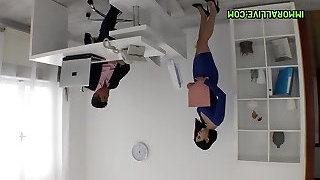 Boss Boinks Secretary in Stockings Heel After Work and Cum in Panties