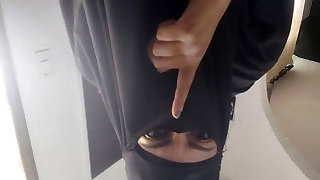 Big-boobed Arab Cougar in hijab plays with her pussy till she cums - Solo