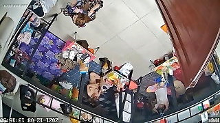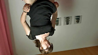 A nude maid is cleaning up in an ditzy IT engineer's office. Real camera in office.