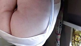 The camera sees the big ass under the short robe of my mature stepmother. Chubby cougar in everyday life. Sexy bbw? PAWG.
