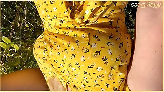 Wifey heads out in a cute summer dress bare-breasted and looks amazing with her blonde hair.
