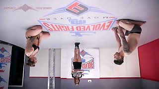 Wrestling inbetween two hotties leads to full contact fucking!
