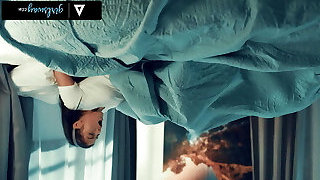 Enchanting milf with massive boobies gets fucked hardcore in spicy bed sex shoot
