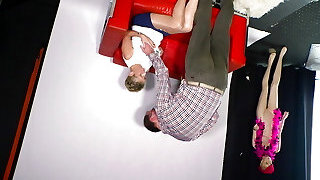 POV stepdaughter sucks and rides stepdad with her BFF