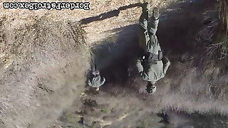 Skinny Woman Fucks A Fence Post