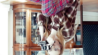 Adorable blonde Jessica with glasses wails while getting fucked