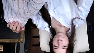 Small boobs Asian girl Lulu Chu with glasses riding a milky dick