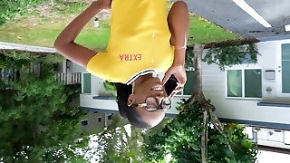 Busty teen amateur in glasses fapping cock