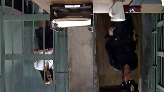 Policewoman licking horny schoolgirl in jail