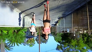 Nicely-shaped babes go for a job then lick some pussy in the park