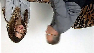 Curly masseur massages virgin’s pussy lips