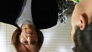 Hot Asian milf getting her face pounded in a kinky office orgy