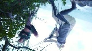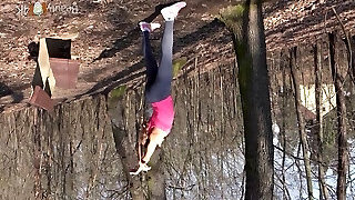 Sexy slut finds herself in the woods getting her ass pummeled