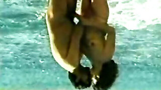 Bold blonde strips down and bathes bare in a river