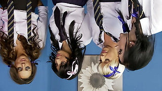 Hasumi Ten Gets Threesome Action Cum In Mouth Schoolgirl With Shaved Pussy Perfect Bum Piston Action