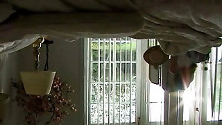 Beautiful and in lingerie, the beautiful ash-blonde enjoys the