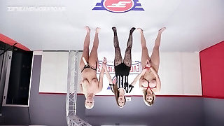 Rizzo Ford grapples and pummels in the ring with her girlfriends