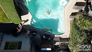 Handsome oil wrestling and hardcore fuck session for blonde stud