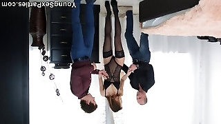 Mature Teacher milks couple dicks and gets double penetrated by students