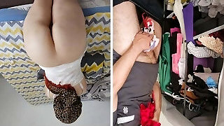 College girl cracks her pussy thinking about her stepdad's big trunk