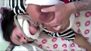 Tied up plump unexperienced teen flashes her big orbs while lying on the bed