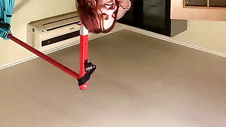 Bondage & Discipline session with fuck machine against the wall - hard slapping