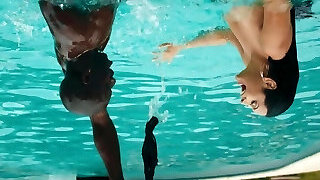 He sticks his dick in her twat under water