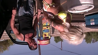 Alison Angel flashing her awesome fat natural jugs outdoors