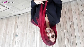 GERMAN SCOUT - Massive Saggy Tits Redhead Teen Dani Luve Pickup and Casting Fuck