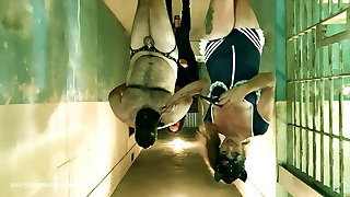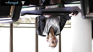 Sexy Busty Blonde MILF Milks the Suspended Cock Of Her Fuckfest-slave, Making Him Jizz In His Own Mouth