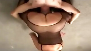 Blonde chick with big tits wearing fishnet having joy - Homemade