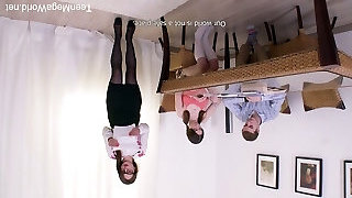 Sexy Slim Blonde Cutie Tempts Her Stepson To Fuck Her During the Foot Rubdown