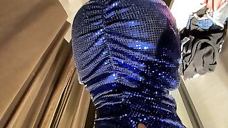 Shiny Purple Spandex Tease