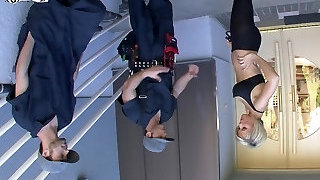 Super-fucking-hot housewife Lukerya. Fun flirting in the kitchen while sitting on the washing machine. Bottom view.
