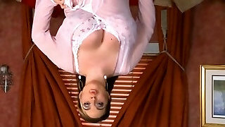 Observe Brandy Robbins wringing her two pairs of melons in front of webcam