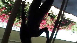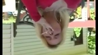 sultry big-titty bi-atch smoking displayed on the balcony