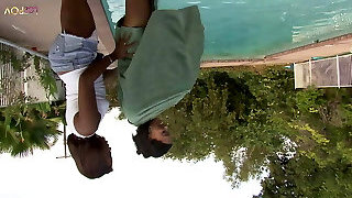 Mischievous lesbians with big donk take advantage of home alone to lick their pussies in the pool - Pornography in Spanish