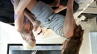 Fit Busty Redhead Cougar Lets Her Latina BFF Fuck Her With a Cable-on Sharing Mutual Cunni Delight