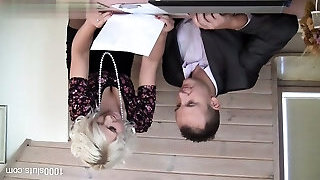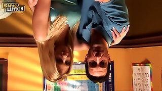 Slutty nerdy big-titted blonde housewife turns guy on to ride his strong cock